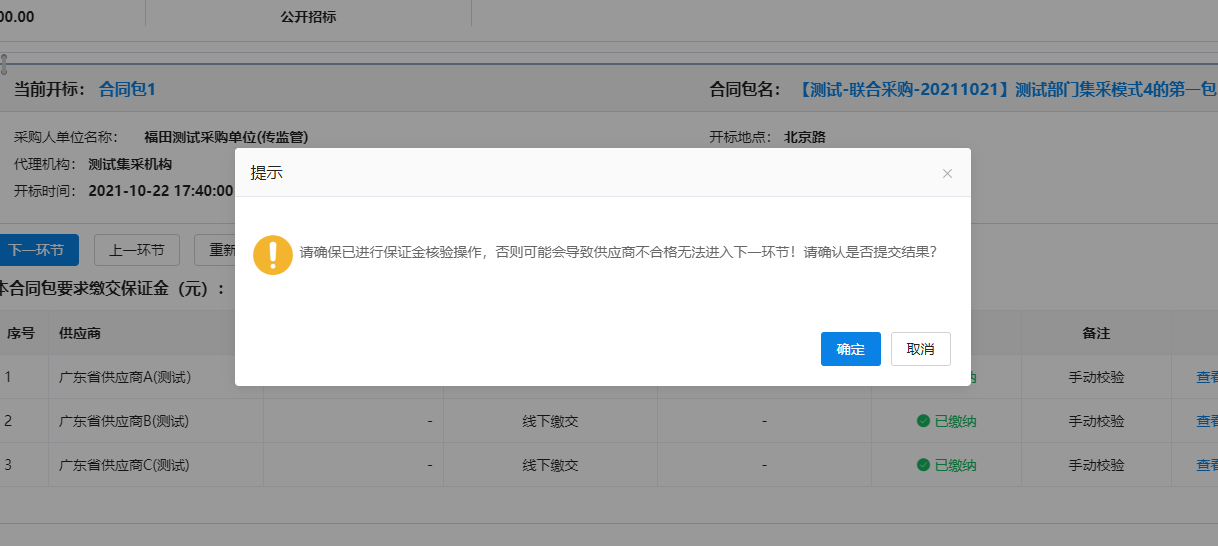 步骤三:在资格评审环节结束后,代理机构人员需对资格评审结果进行确认。