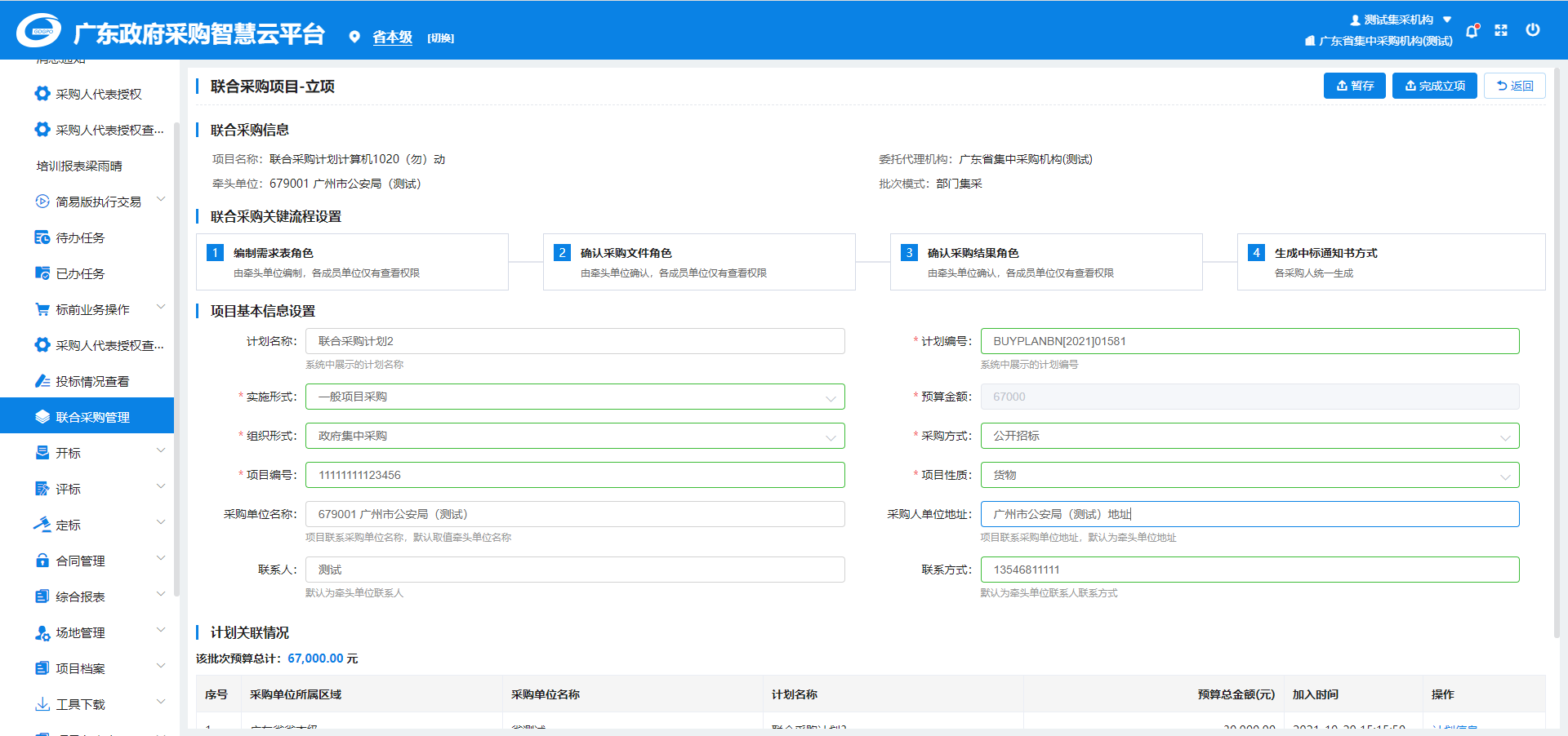 **步骤五:**确认信息无误,点击【完成立项】完成项目立项工作。