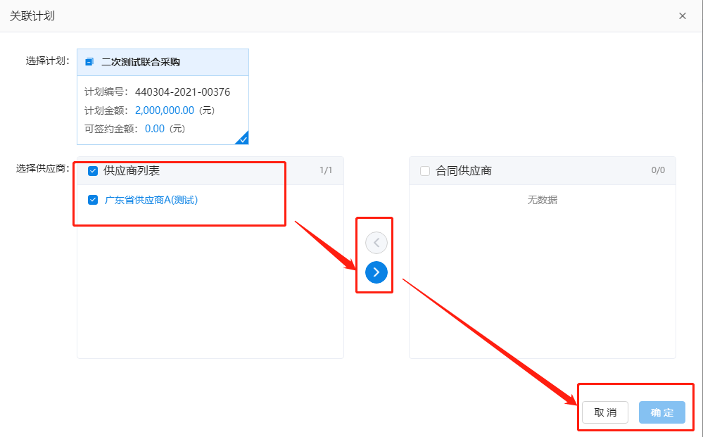 步骤二:选择365bet登录_365bet.com亚洲版_北海365信息分类计划及供应商进行签订,若有多项目包,可同时勾选签订