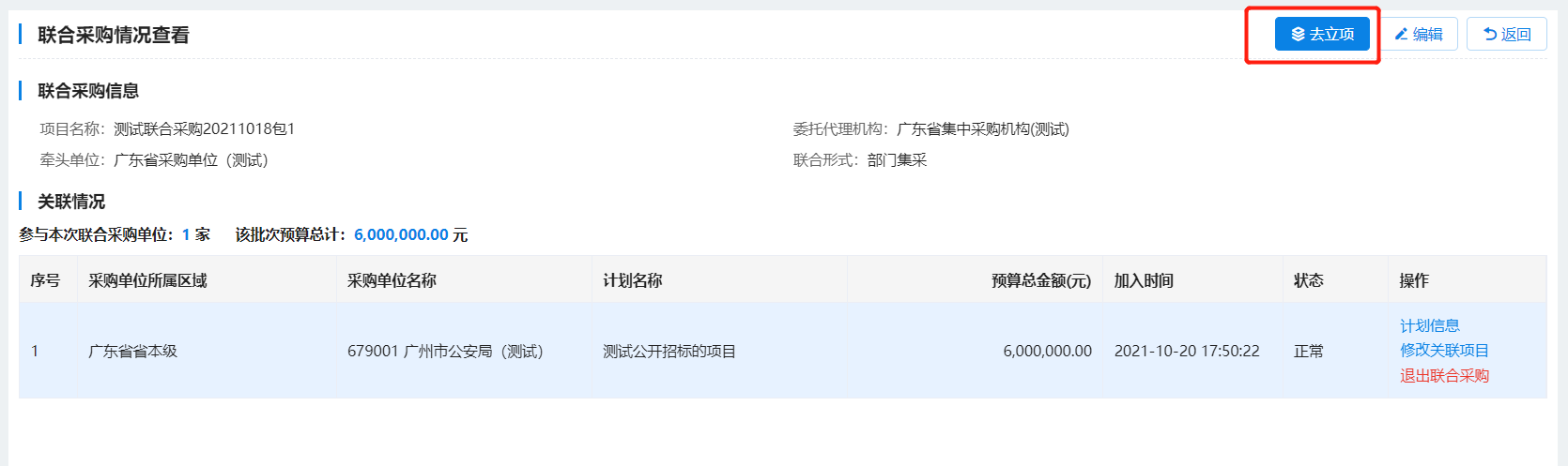 **步骤二:**确认参与的计划无误,右上角点击【去立项】。