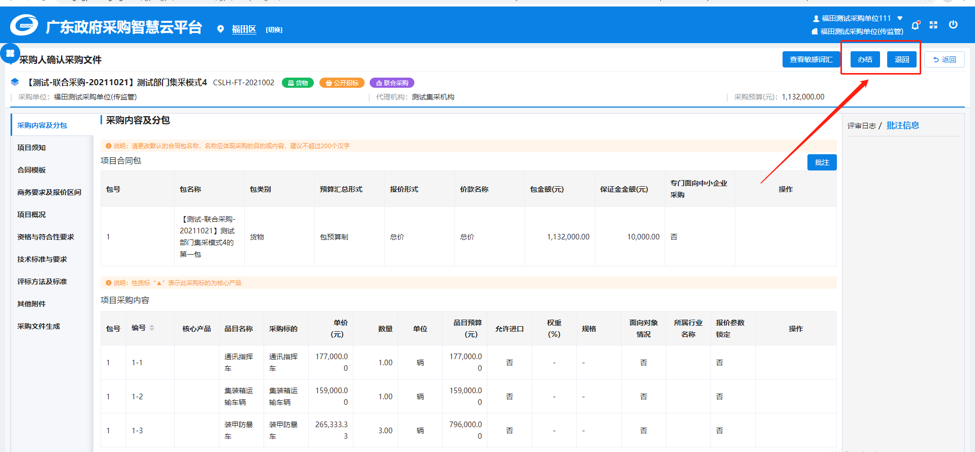 **步骤二:**确认信息后,点击【办结】或者【退回】,结束当前环节