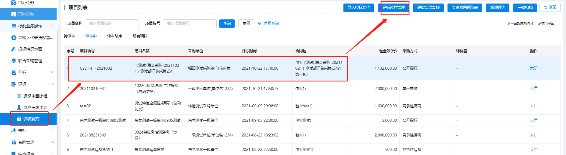 步骤一:请依次选择“项目365bet登录_365bet.com亚洲版_北海365信息分类→评标→评标管理”,选中项目点击【评标管理】。