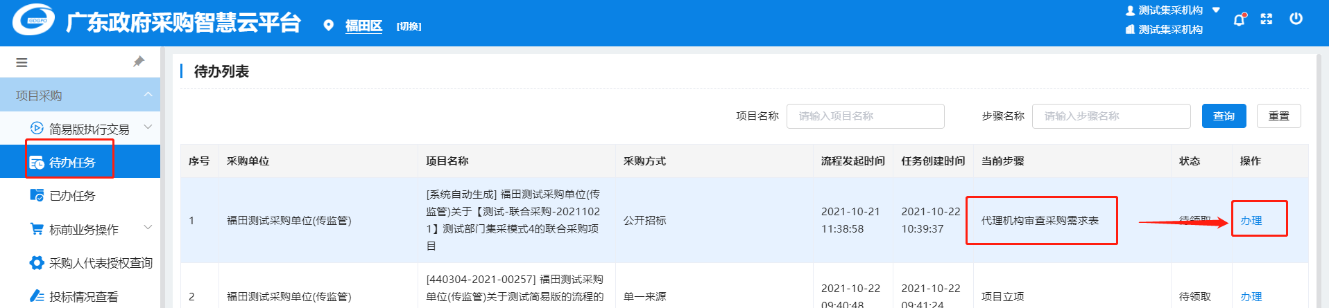 **步骤一:**请依次选择“项目365bet登录_365bet.com亚洲版_北海365信息分类→待办任务”,找到待“代理机构审查365bet登录_365bet.com亚洲版_北海365信息分类需求表”的项目,点击【办理】
