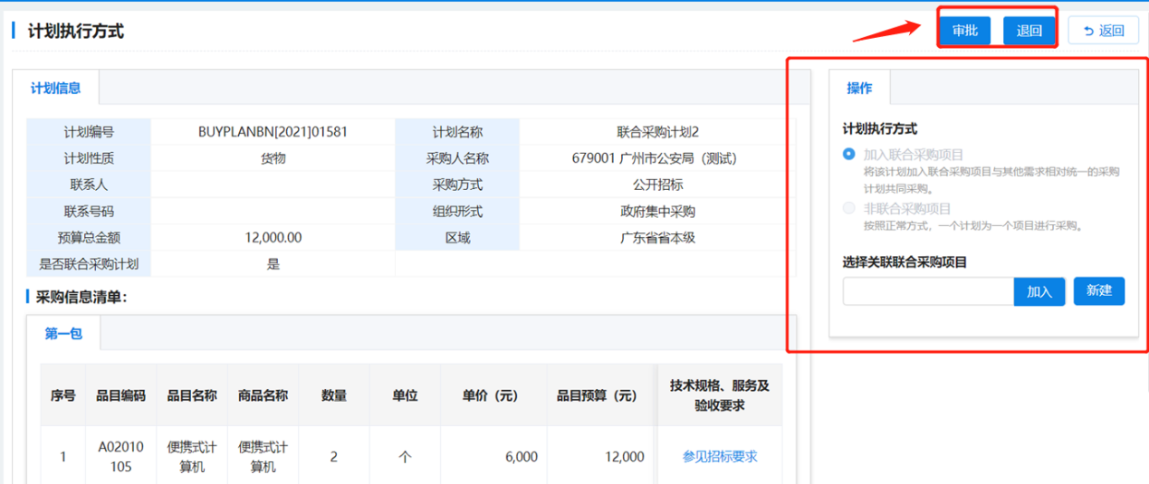 **步骤二:**确认计划信息、365bet登录_365bet.com亚洲版_北海365信息分类信息清单、计划附件等信息等内容后,选择右上角【同意】或者【退回】,点击【提交】进入下一环节。