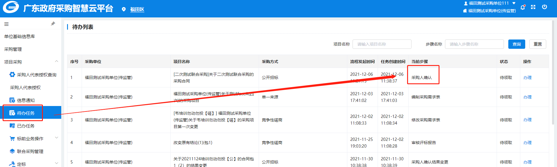 **步骤一:**请依次选择“项目365bet登录_365bet.com亚洲版_北海365信息分类→待办任务”,找到待“确认中标人”的项目,点击【办理】,一个项目多个包时需要多次确认中标人。