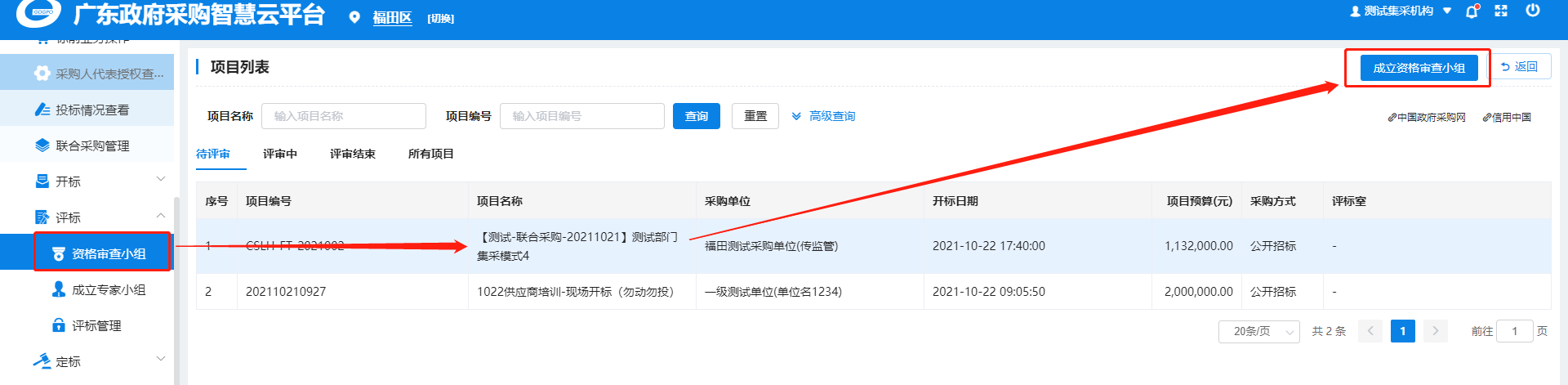 步骤一:请依次选择“项目365bet登录_365bet.com亚洲版_北海365信息分类→评标→资格审查小组”,选中项目点击【成立资格审查小组】。