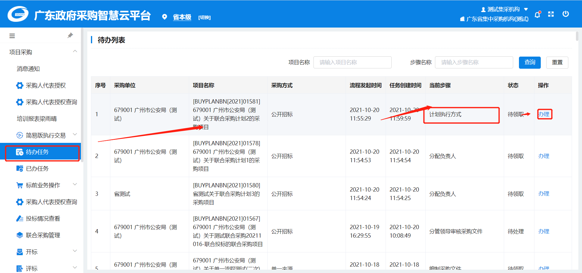 步骤一:请依次选择“项目365bet登录_365bet.com亚洲版_北海365信息分类→待办任务”,找到待“计划执行方式”的项目,点击【办理】。