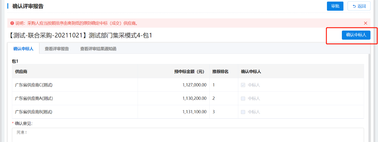 温馨提示:若编制365bet登录_365bet.com亚洲版_北海365信息分类需求中的中标(成交)确定方式是:“365bet登录_365bet.com亚洲版_北海365信息分类人按照评标报告中推荐的中标候选人确认中标人”,365bet登录_365bet.com亚洲版_北海365信息分类人需要在专家评审结束后,并且代理机构确认后,进行确认中标人操作。