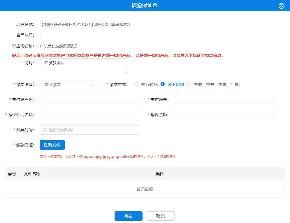 **步骤三:**可根据实际情况填写备注说明,点击【确定】进入下一环节操作。