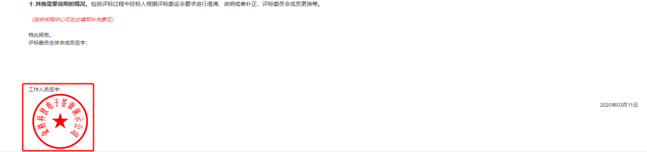 在《评审结果》经评审委员会全体成员确认通过后,由代理机构人员对评标报告进行签章操作。