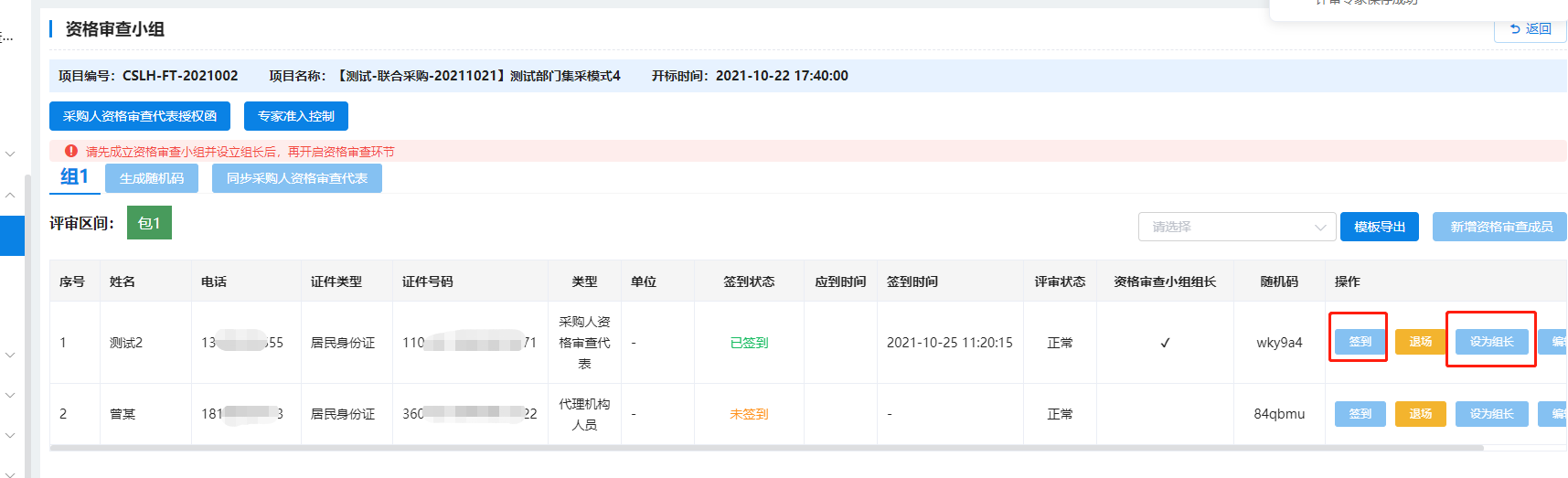 通过点击【新增资格审查成员】进行添加多位资格审查成员,自动生成登录随机码。