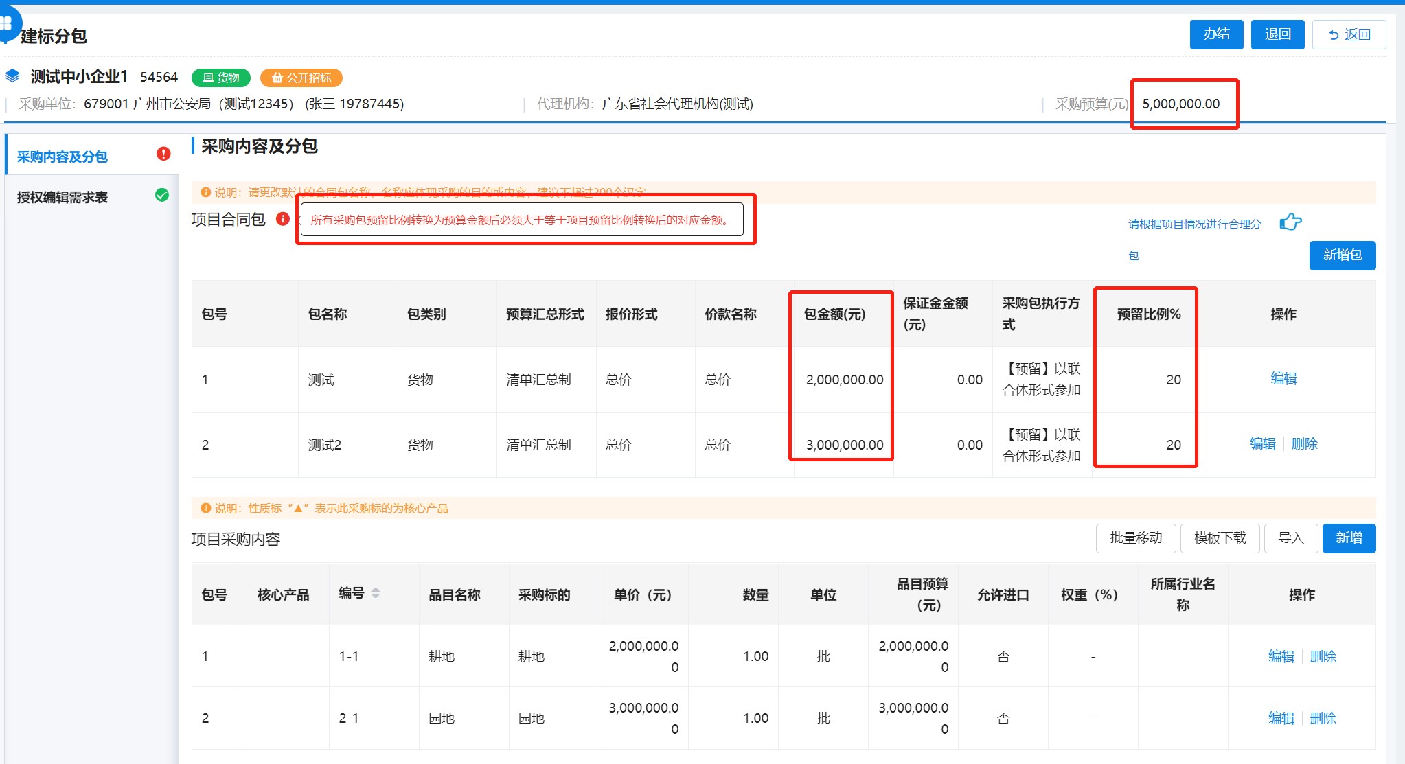 ④ 当计划要求执行方式为“合同分包形式预留”时,365bet登录_365bet.com亚洲版_北海365信息分类包可选择【预留】要求合同分包或【非预留】非专门面向中小企业,但至少一个365bet登录_365bet.com亚洲版_北海365信息分类包需标记为【预留】要求合同分包,所有365bet登录_365bet.com亚洲版_北海365信息分类包预留比例转换为预算金额后必须大于等于项目预留比例转换后的对应金额。