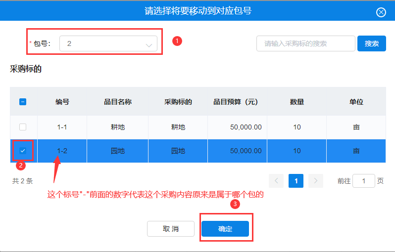 步骤二:补充“365bet登录_365bet.com亚洲版_北海365信息分类内容及分包”信息(365bet登录_365bet.com亚洲版_北海365信息分类内容编号为“包号-编号”,例如365bet登录_365bet.com亚洲版_北海365信息分类内容编号为1-1则代表这个第一个包的第一个365bet登录_365bet.com亚洲版_北海365信息分类内容);批量移动操作为选中某个包就会显示出不属于该包的所有365bet登录_365bet.com亚洲版_北海365信息分类内容,勾选需要移至该包的内容后点击【确定】,如图二。