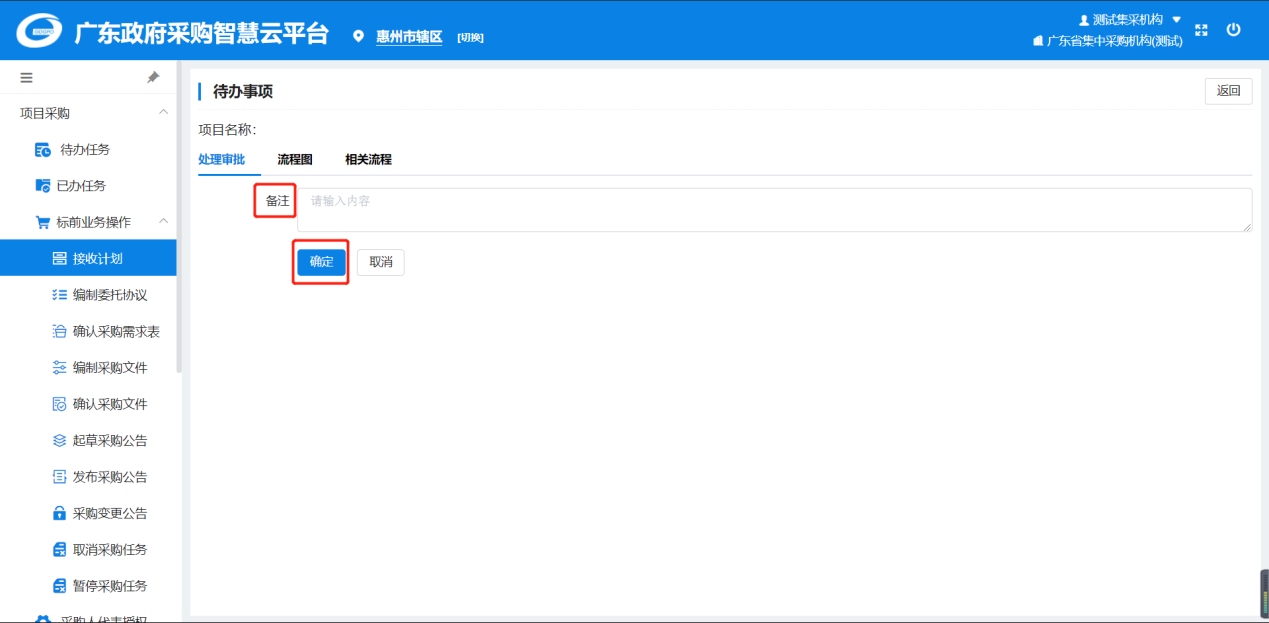 **步骤三:**可根据实际情况填写备注说明,点击【确定】进入下一环节操作。