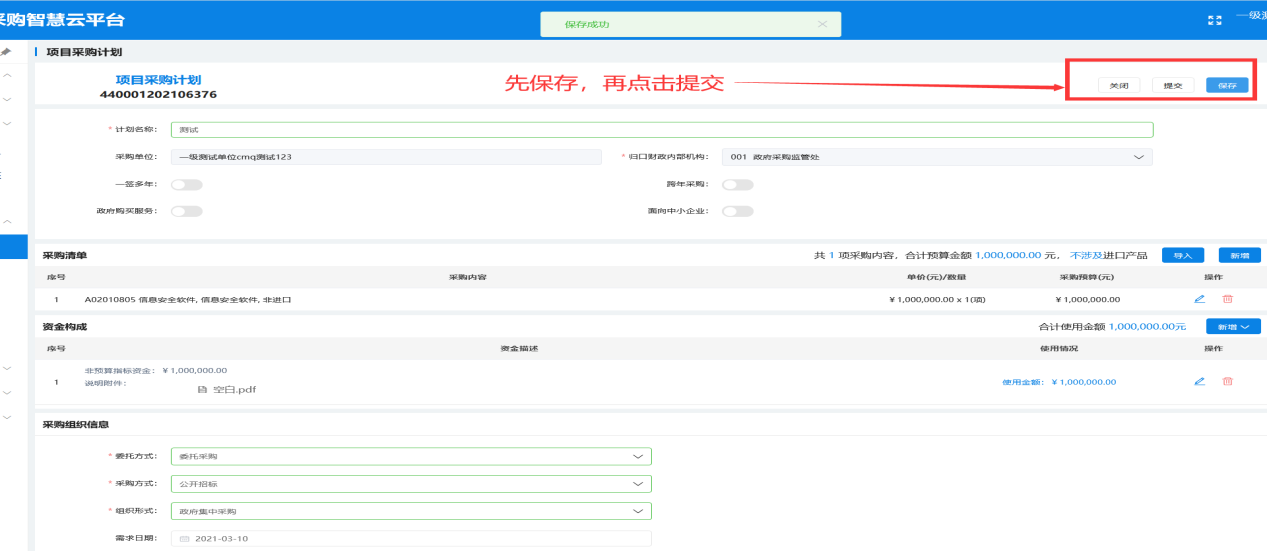 **步骤五:**填写后,可先【保存】或者直接【提交】。