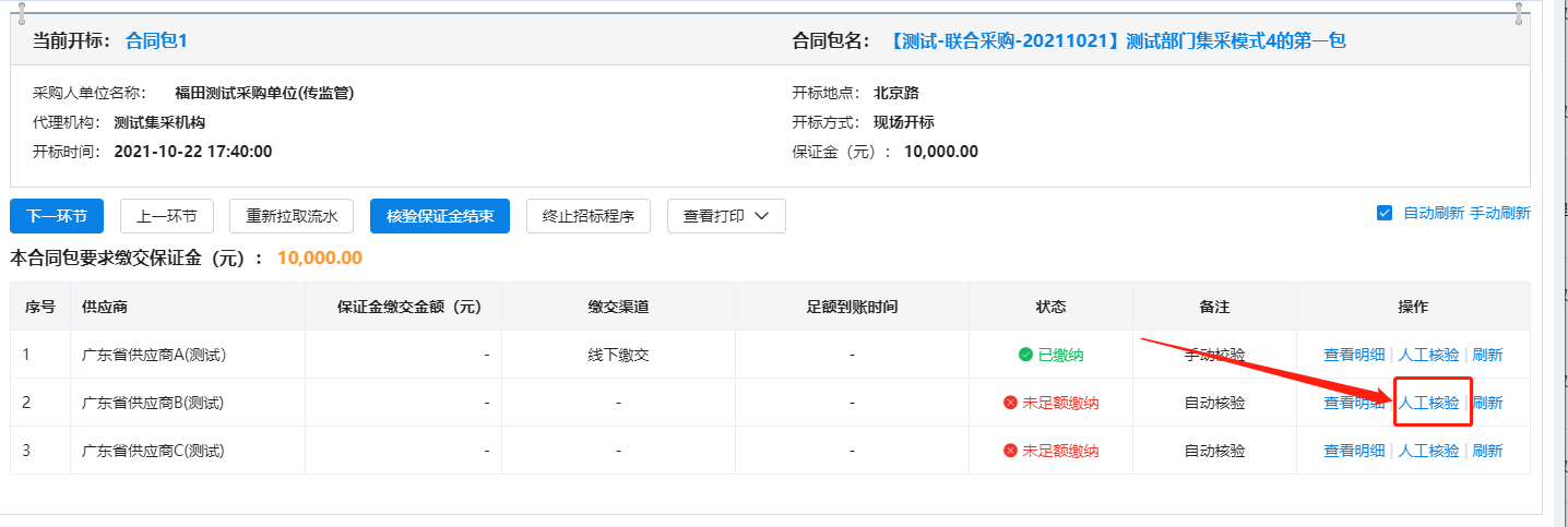 步骤三:在资格评审环节结束后,代理机构人员需对资格评审结果进行确认。