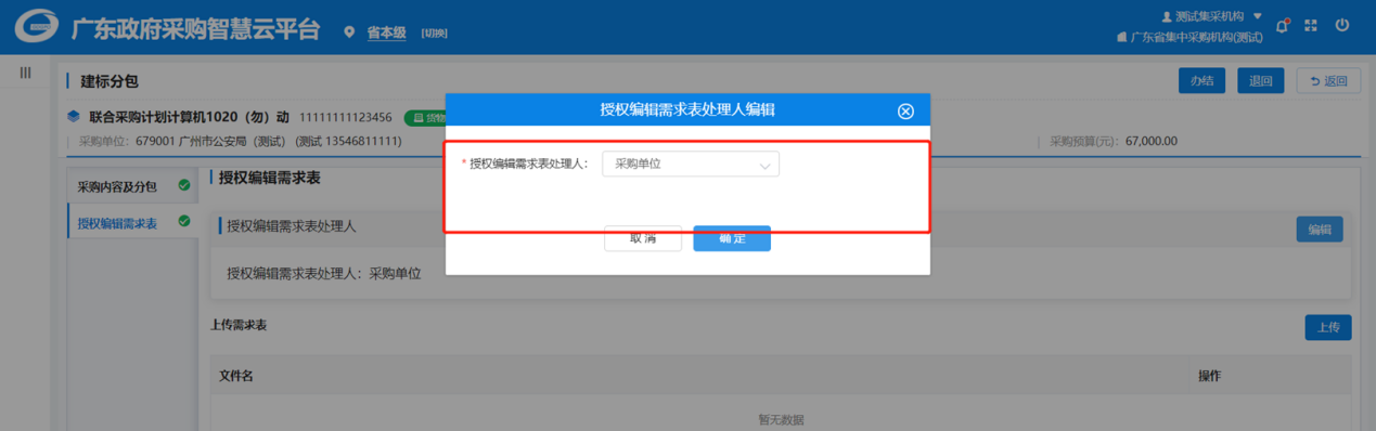 **步骤三:**授权编辑需求表,默认是365bet登录_365bet.com亚洲版_北海365信息分类单位,可以委托授权代理机构进行编制需求表。