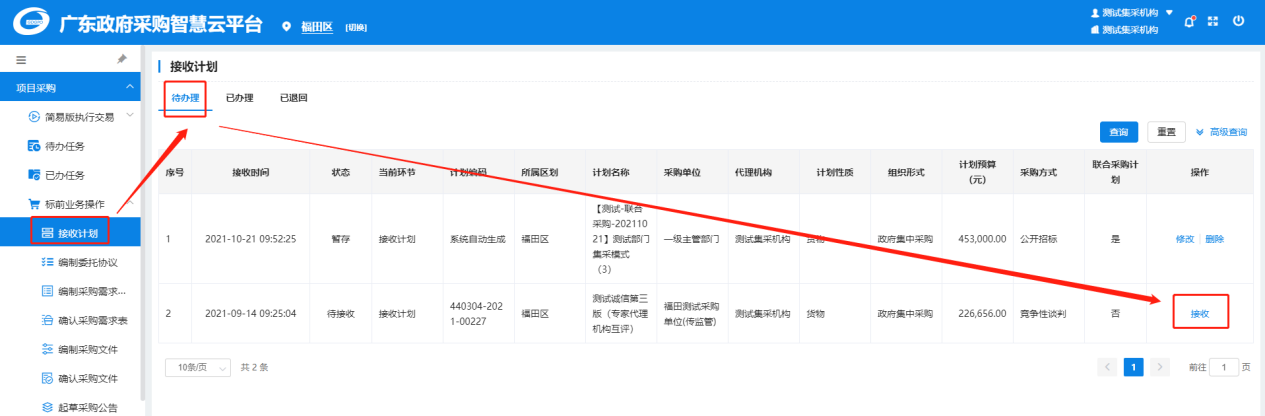 请依次选择“项目365bet登录_365bet.com亚洲版_北海365信息分类→标前业务操作→接收计划”,选中365bet登录_365bet.com亚洲版_北海365信息分类计划点击【接收】进行计划接收。如图所示: