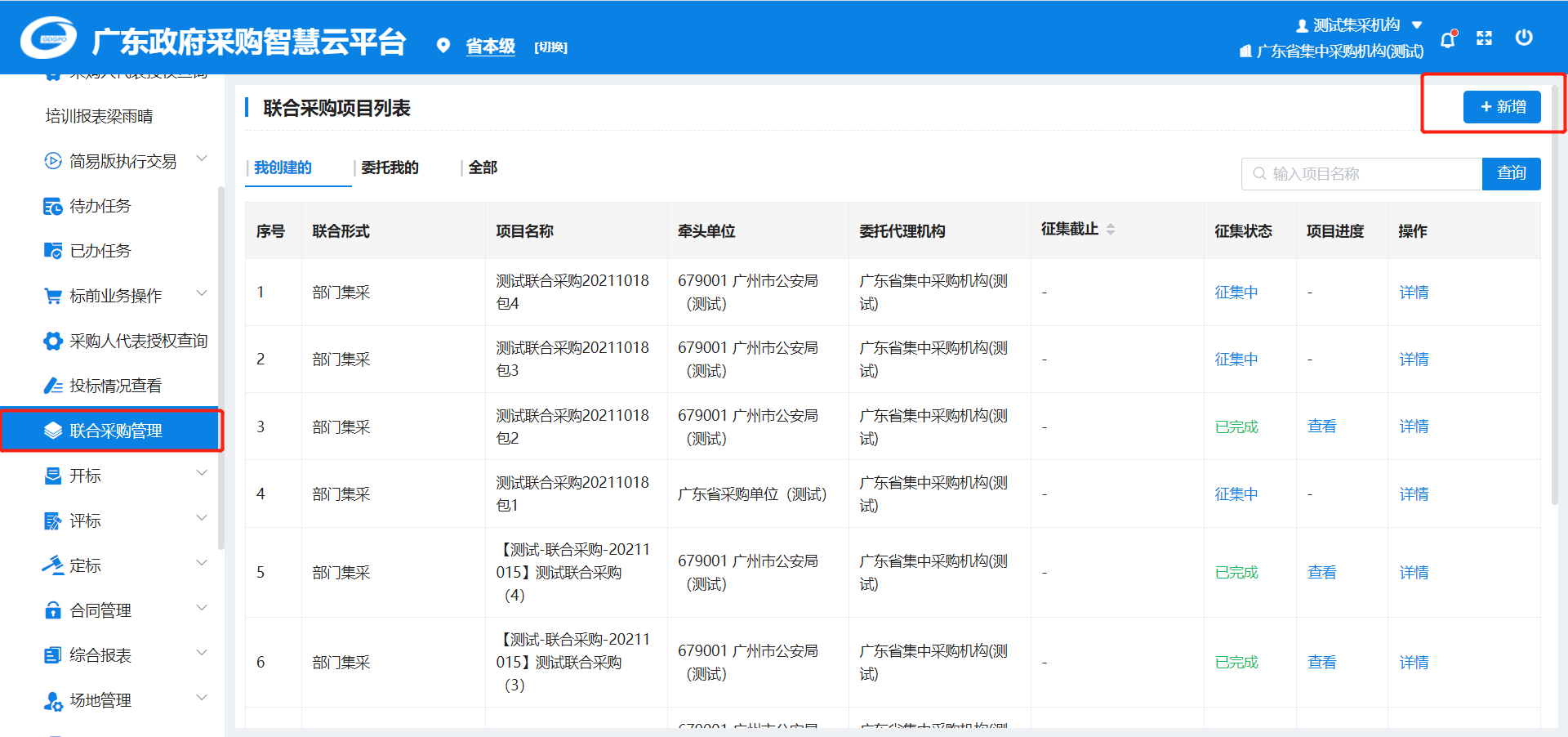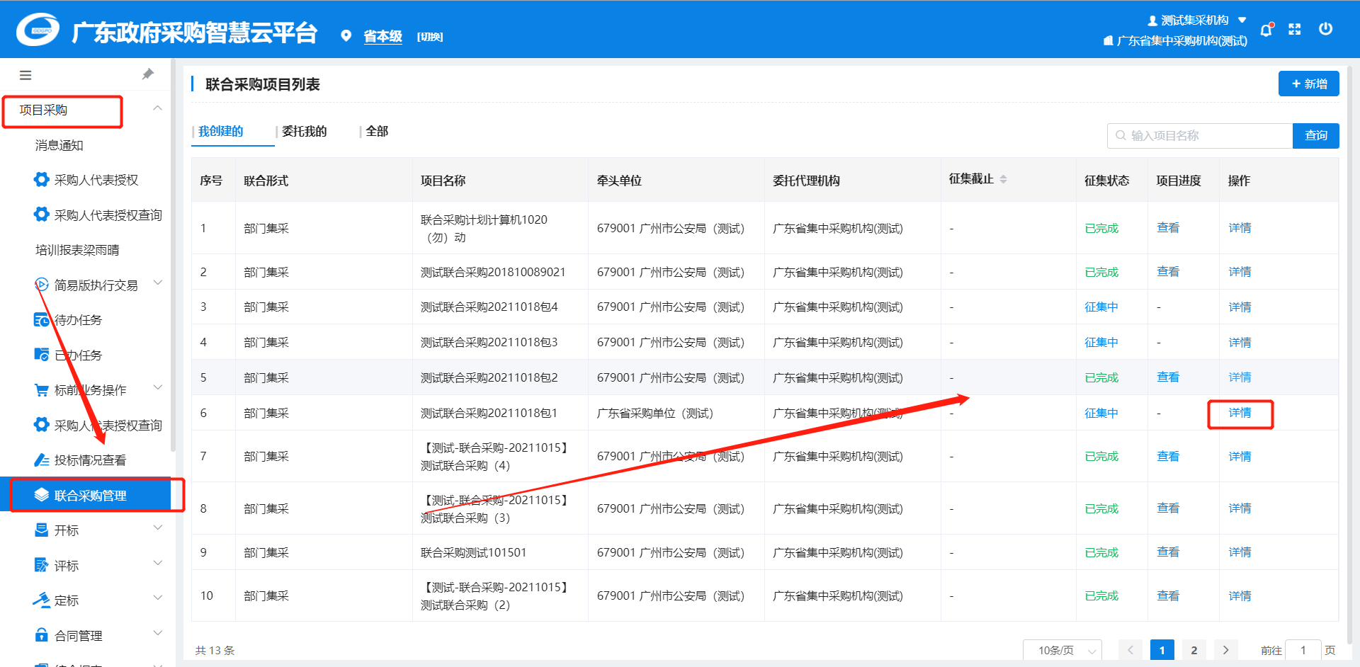 步骤一:请依次选择“项目365bet登录_365bet.com亚洲版_北海365信息分类→联合365bet登录_365bet.com亚洲版_北海365信息分类管理”,选中“征集中”状态的项目,点击【详情】进入详情页。