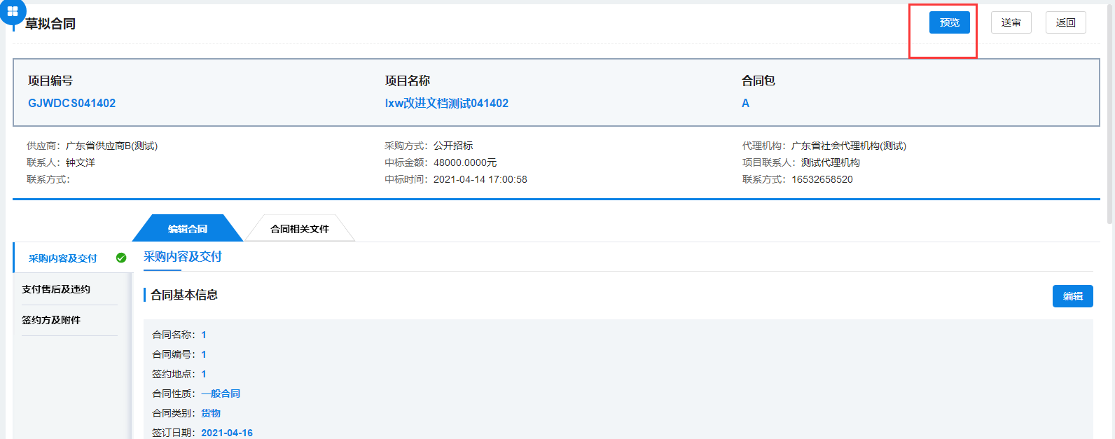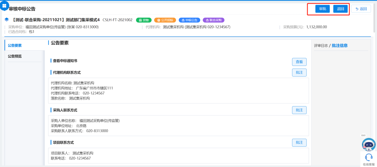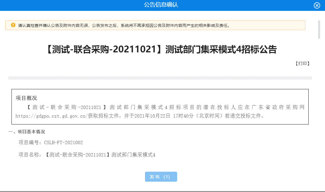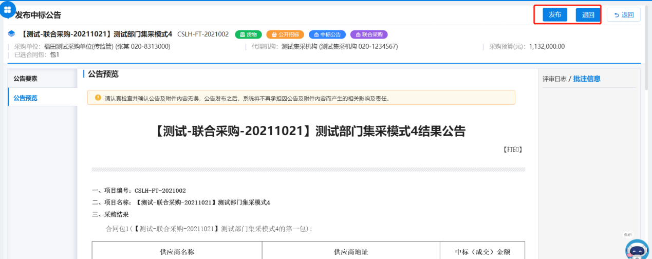 步骤二:点击【发布】,发布中标公告,公告将推送至门户。