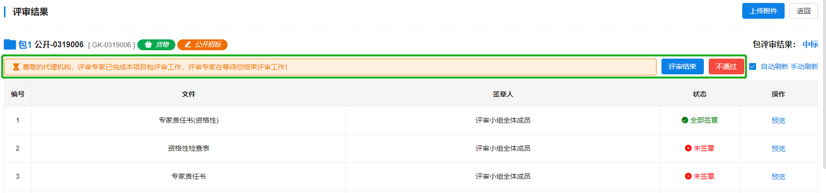 步骤四:对专家评审结果进行确认后,点击【评审结束】或者【不通过】。