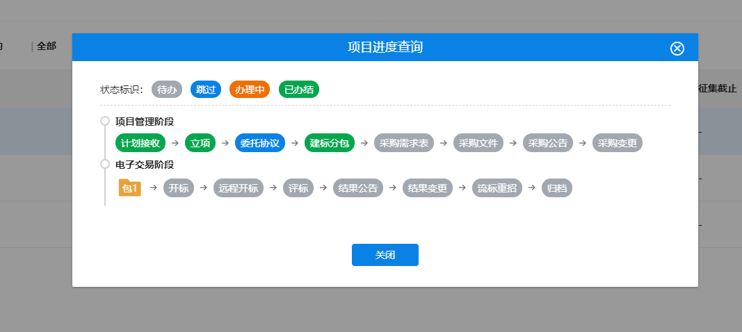 【查看】:已征集完并立项的项目,可以查看项目进度