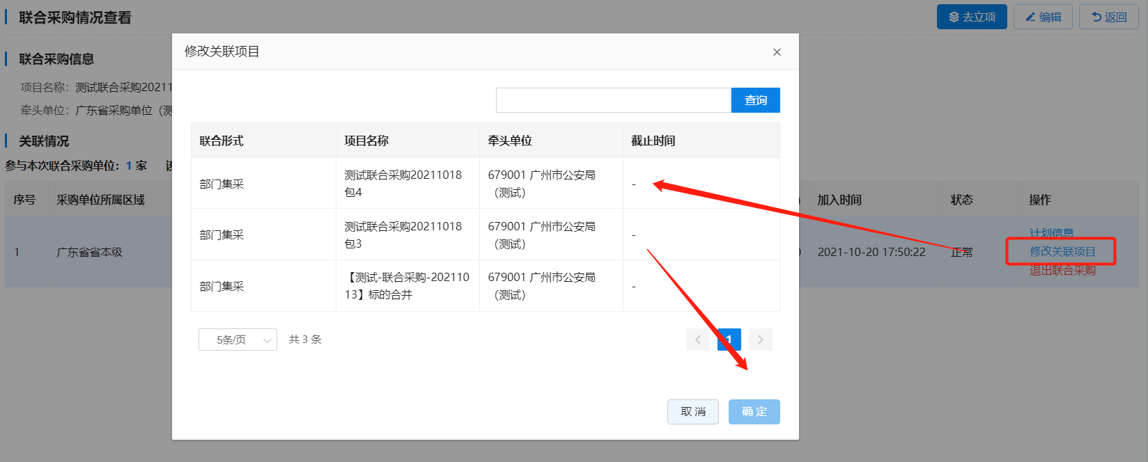 计划需要修改关联的项目,点击【修改关联项目】,重新选择项目并确定。