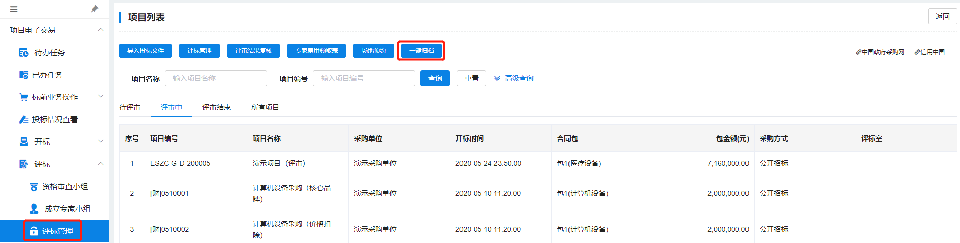 温馨提示:在评审结束后,可对评审过程中产生的过程文件进行上传。最后需要进行【一键归档】操作。