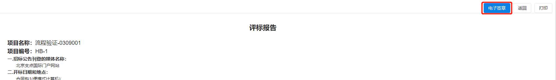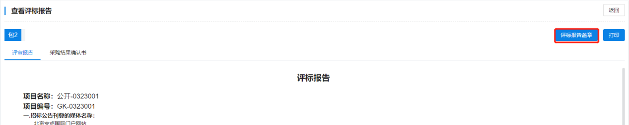 步骤二:点击【评标报告盖章】,完成对《评标结果》签章操作。
