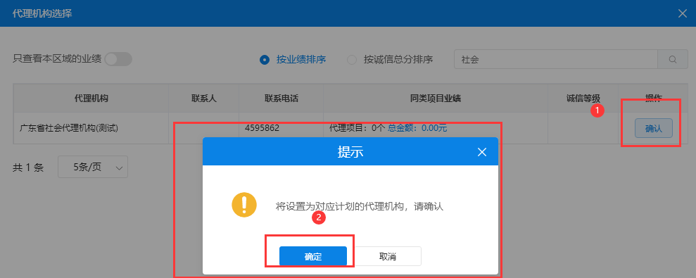 **步骤三:**在项目评审环节结束后,代理机构人员需对项目评审结果进行确认。