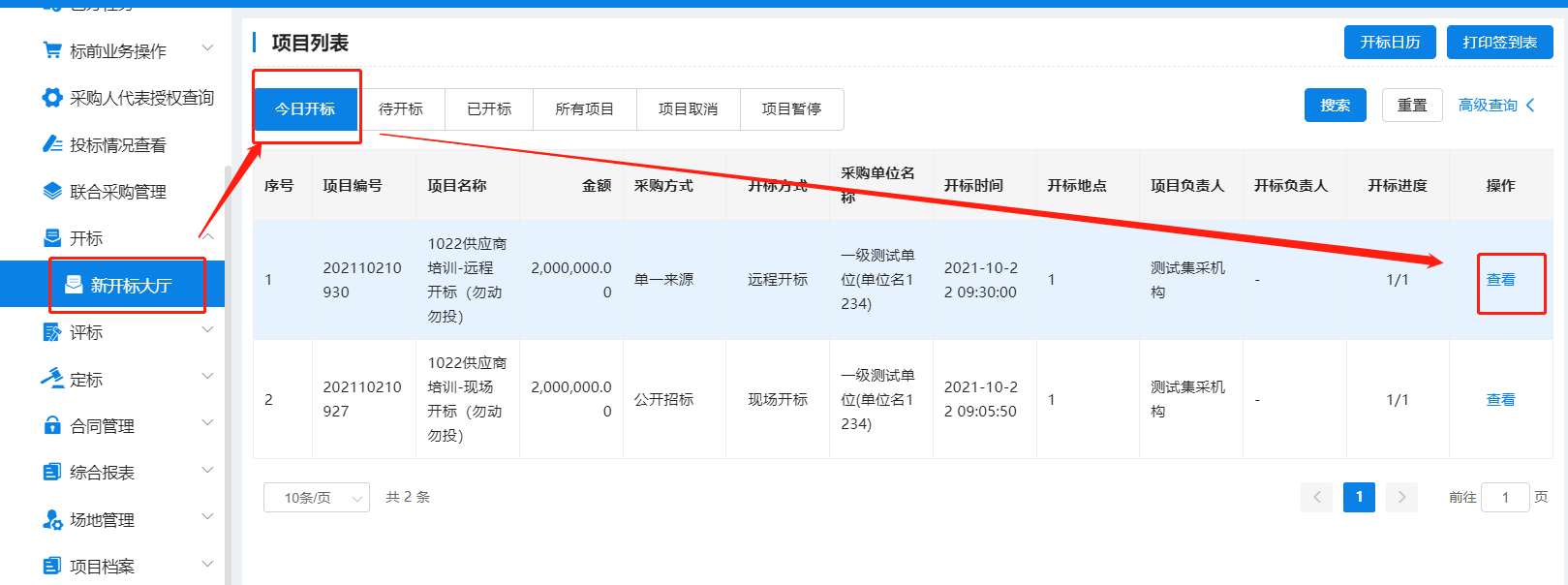 步骤二:点击【开放资格评审】,即项目资格性评审开始,一个项目多个包需要对每一个包开放资格评审。