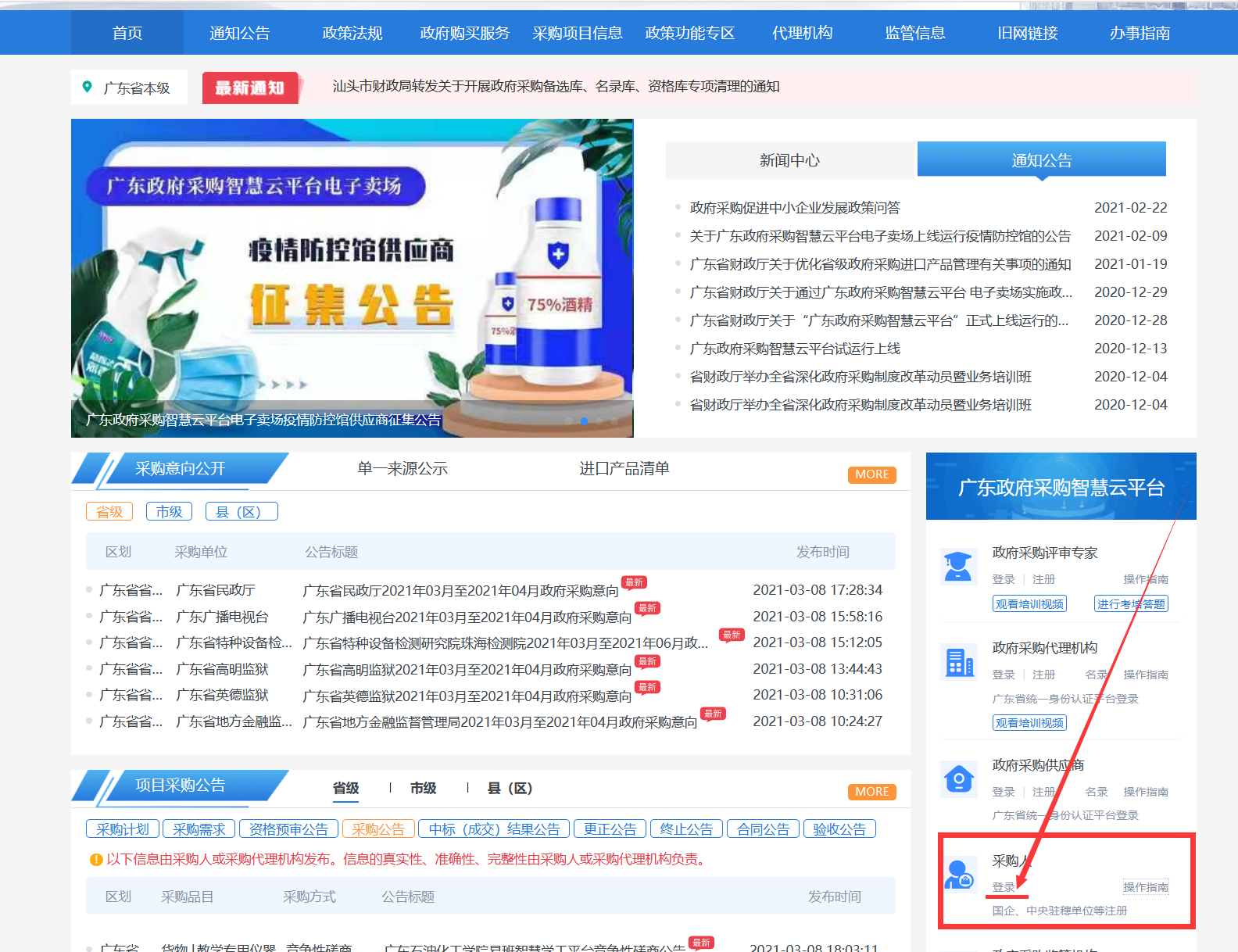 步骤一:代理机构需要登录广东省政府365bet登录_365bet.com亚洲版_北海365信息分类网,网址为:https://gdgpo.czt.zgdzfc.com/ (opens new window),如果没有登录账号需要提前注册。