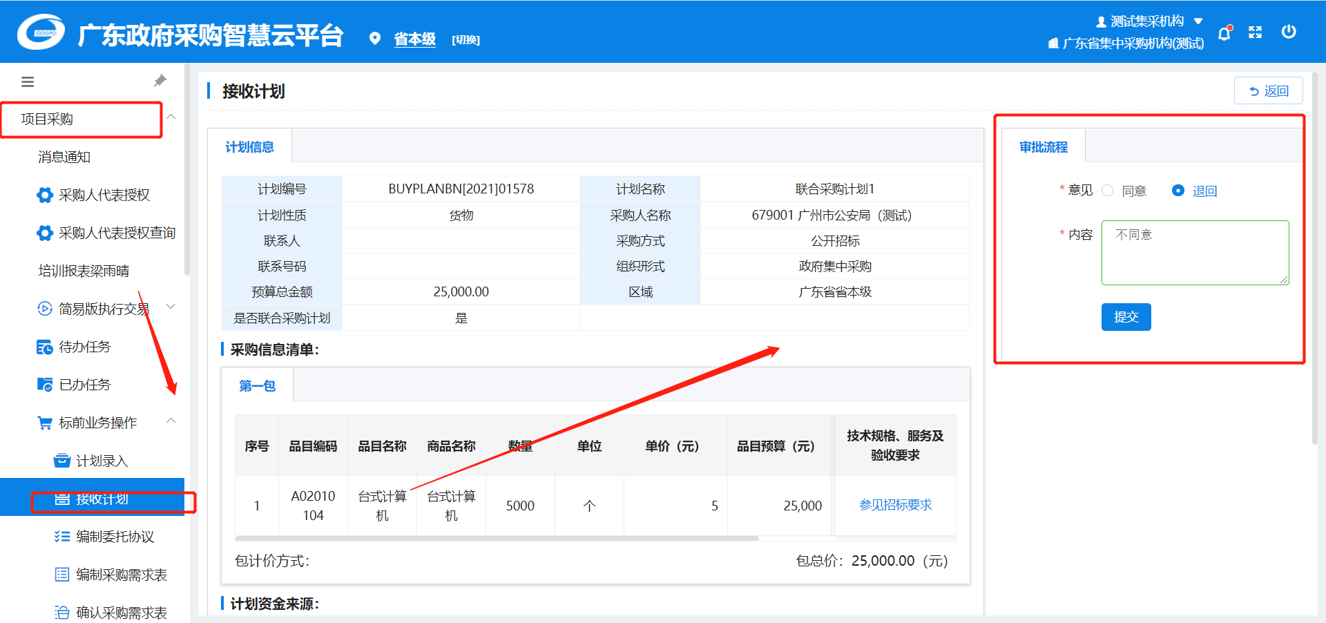**步骤二:**确认计划信息、365bet登录_365bet.com亚洲版_北海365信息分类信息清单、计划附件等信息等内容后,选择右上角【同意】或者【退回】,点击【提交】进入下一环节。